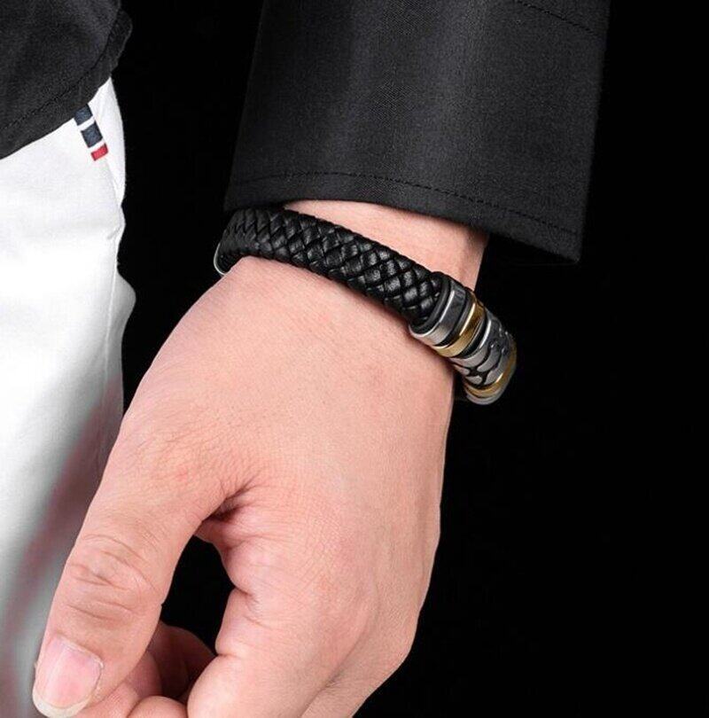 Unleash your inner rebel with our Trendy Punk Men's Woven Leather Bracelet! This bad boy wraps your wrist in woven leather coolness that says "I'm edgy, but I still care about accessories." Perfect for rocking at concerts, impressing your friends, or just adding that extra punch to your everyday style. Who said punk was dead? Not your wrist!