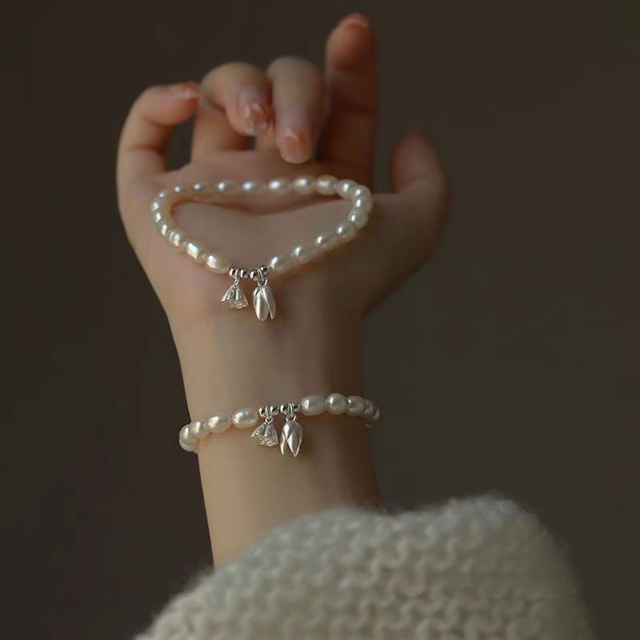 Lotus pod pearl bracelet, women's two generations of beads, small niche versatile design, gentle and fashionable, hand jewelry accessories