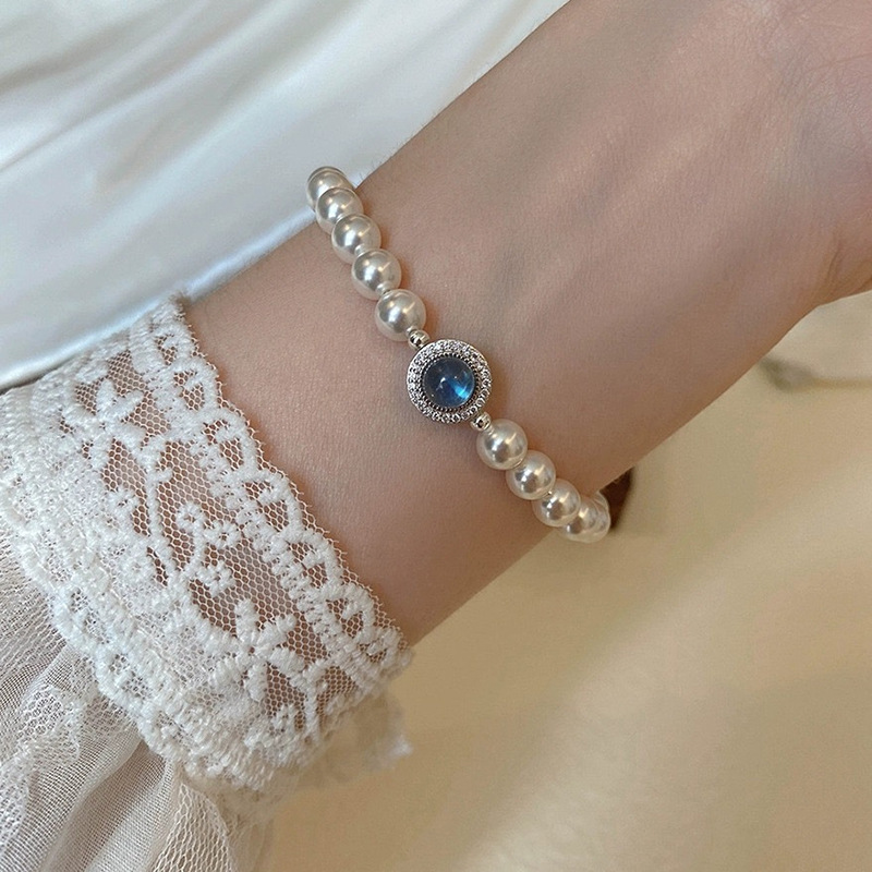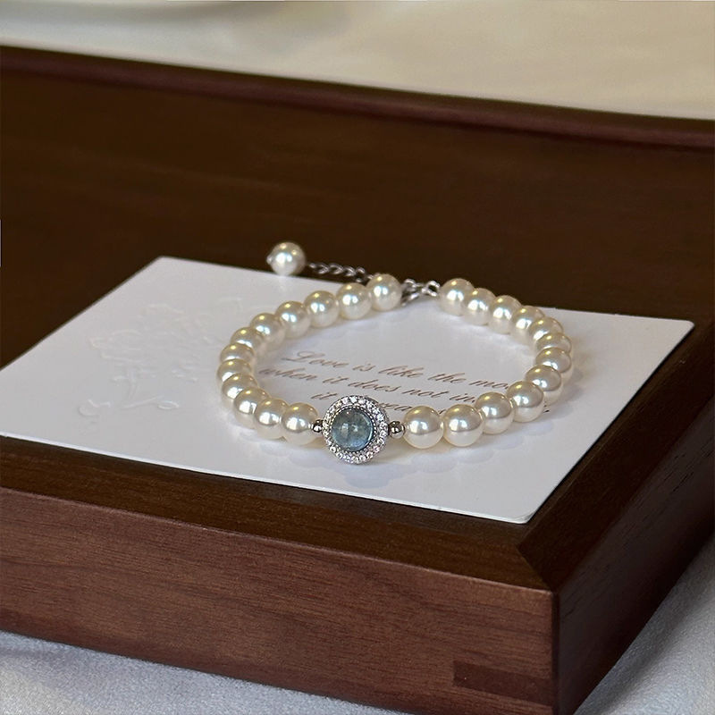 Shark language, mercury, aquamarine, imitation pearl bracelet, light luxury, niche, delicate, French fashion, temperament bracelet women